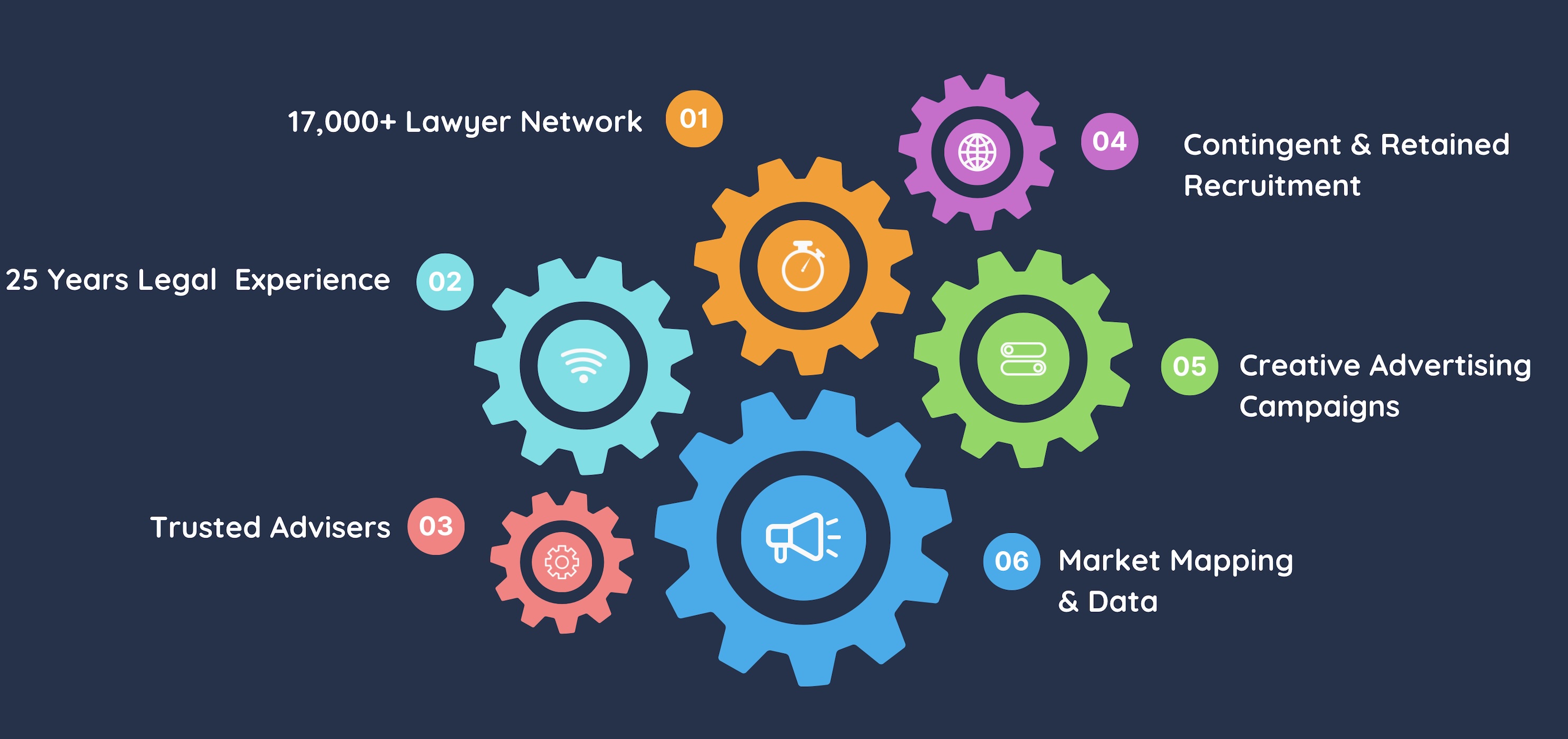 In additional to recruitment services we also provide unrivalled legal market mapping and have worked on numerous advertising campaigns (print and online) for clients looking to expand their brand.